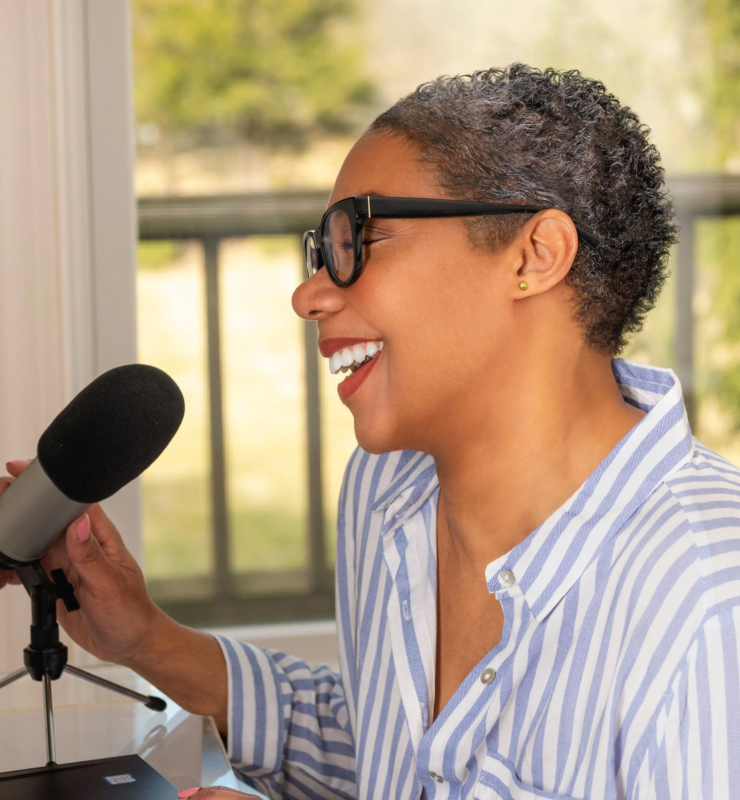 Click any image below to hear her in action—or check out the full list of podcast guest spots and speaking engagements.